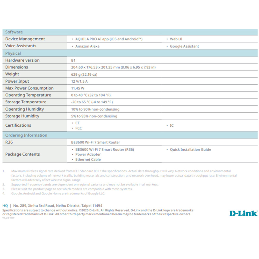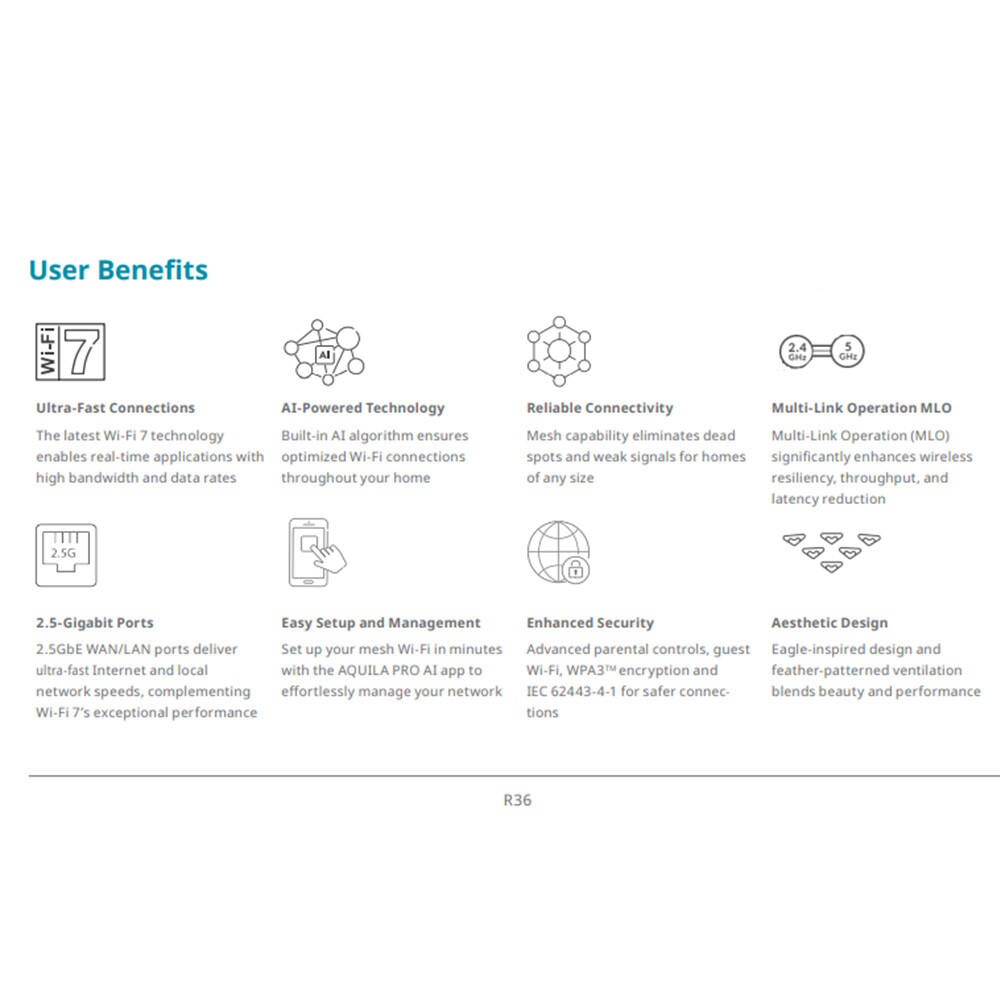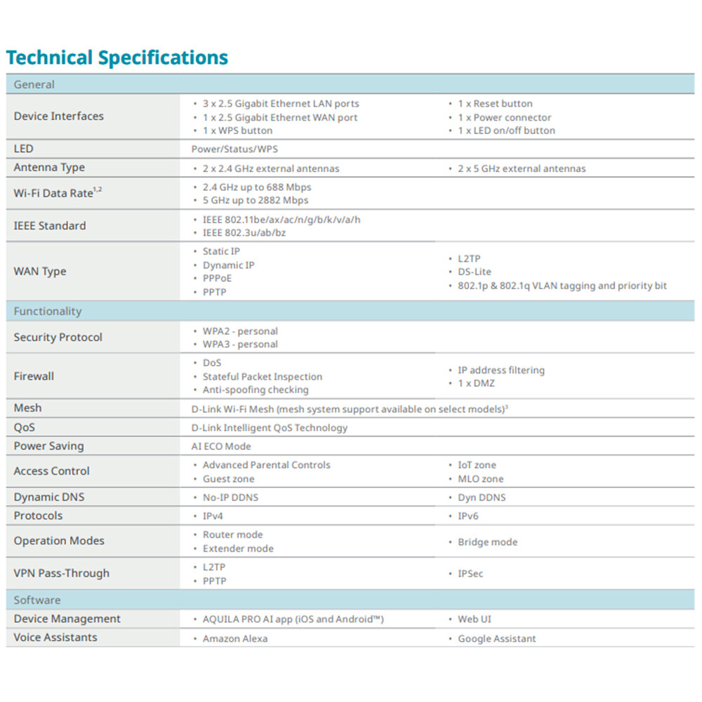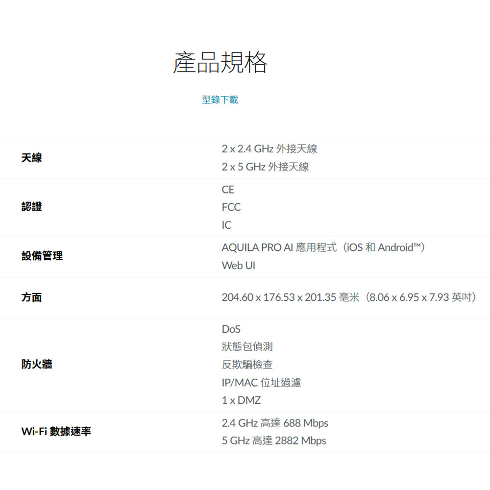 -最新Wi-Fi 7技術 : 160 MHz頻寬,雙頻網速高達2882 Mbps (5 GHz)與688 Mbps (2.4 GHz)。