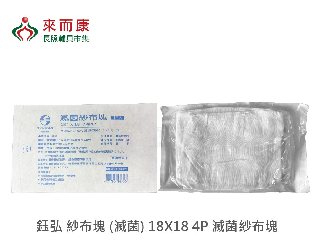 來而康 鈺弘 紗布塊 (滅菌) 18X18 4P 滅菌紗布塊 1入/包 400包/箱 滅菌 紗布