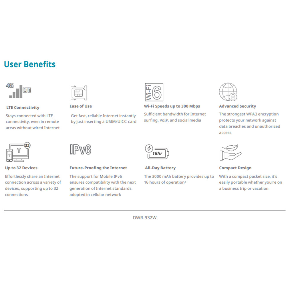 -易於使用:透過板載插槽輕鬆插入SIM卡即可開始共享行動互聯網。