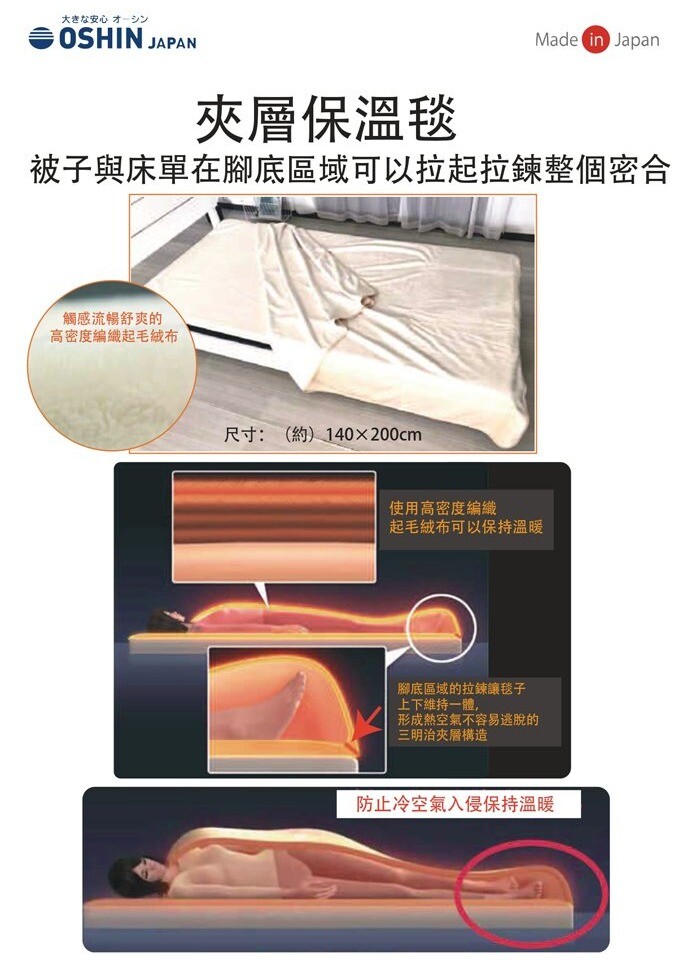 ◆ 被子與床單在腳底區域可以拉起拉鍊整個密合
