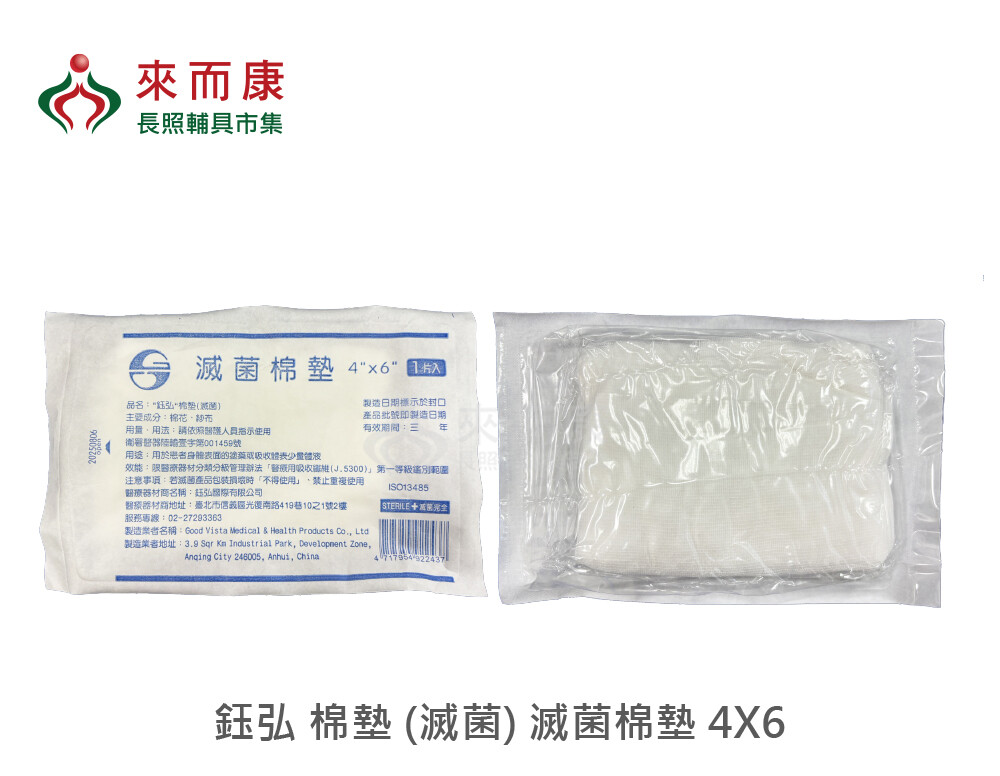 來而康 鈺弘 棉墊 (滅菌) 滅菌棉墊 4X6 1片/包 340包/箱 滅菌 吸收纖維 棉花 紗布