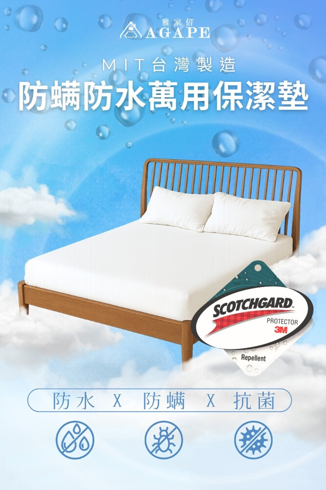 內層使用高品質強力吸水鋪棉層,床包式保潔墊,具防蹣抗菌