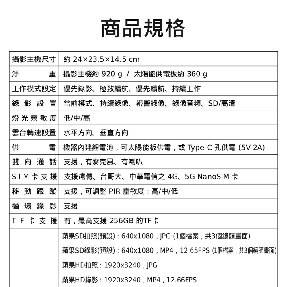 ★ 4G/5G-NanoSIM卡網路連接,手機遠程監控