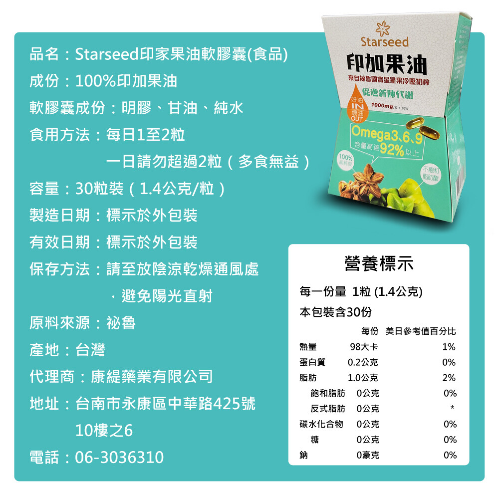 1.商品組合/規格:【Starseed】印加果油軟膠囊(30粒裝)
