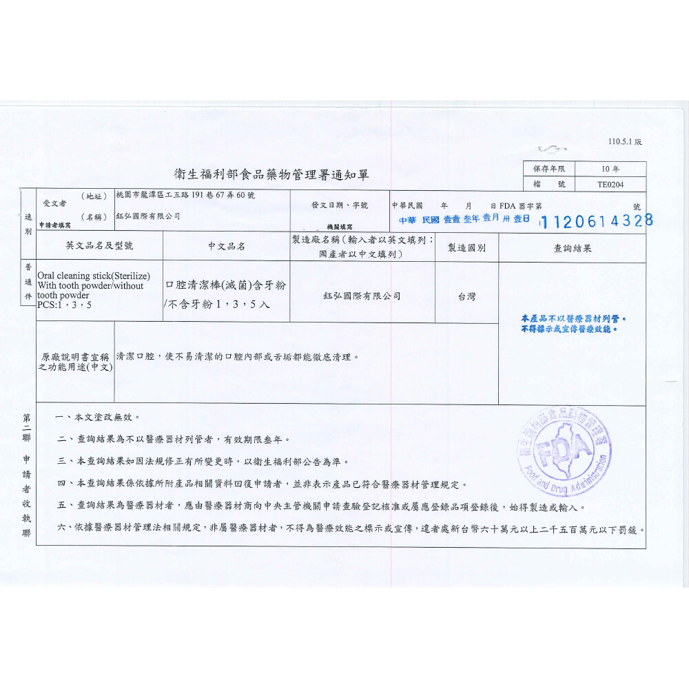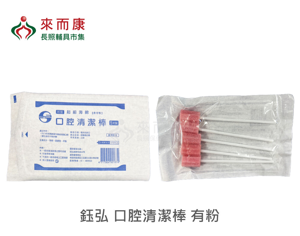 來而康 鈺弘 口腔清潔棒 有粉 5支/包 600包/箱 海綿 潔牙棒 口腔 清潔棒 台灣製造