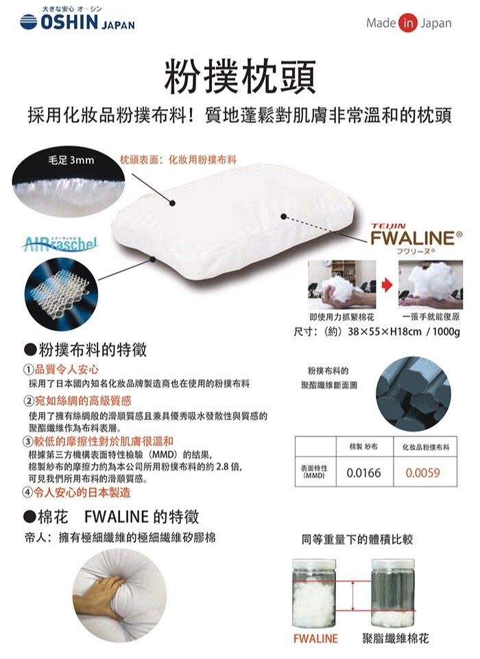 ◆ 採用化妝品粉撲布料 質地蓬鬆對肌膚非常溫和的枕頭