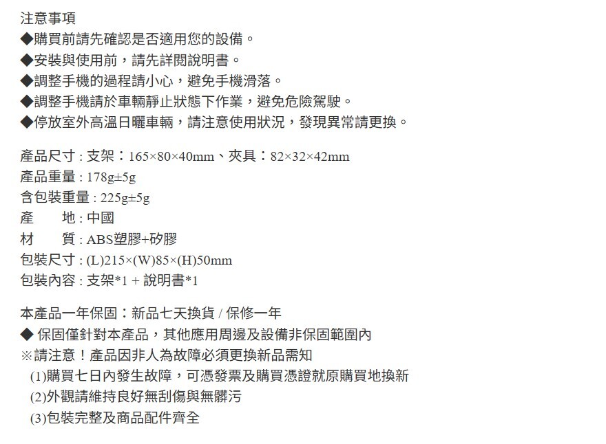 產品尺寸 : 支架:165×80×40mm、夾具:82×32×42mm
