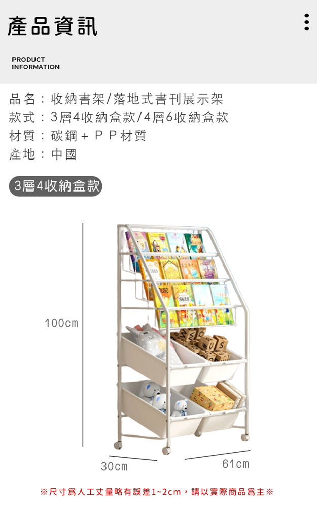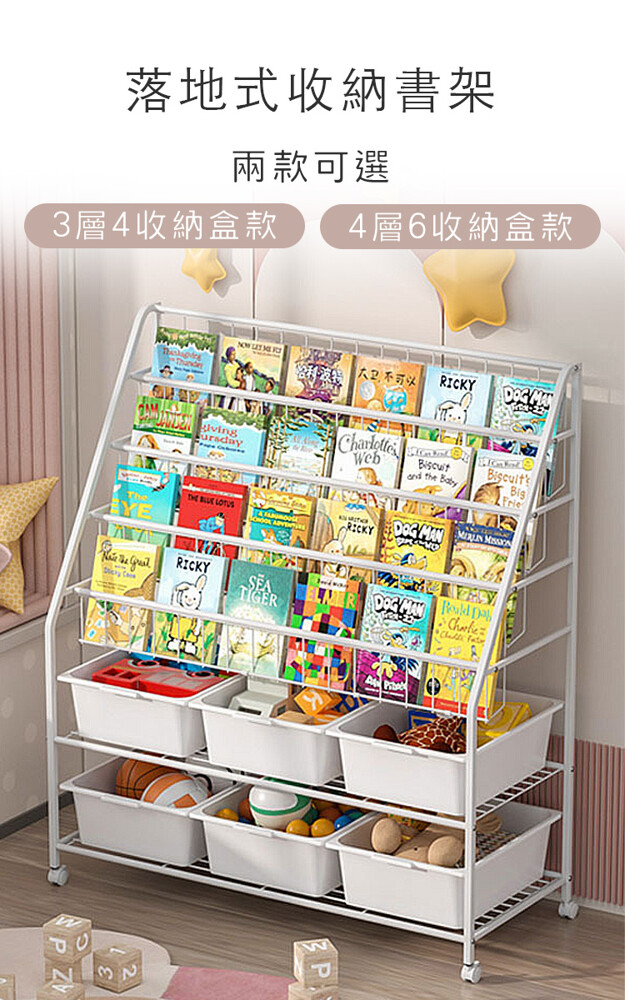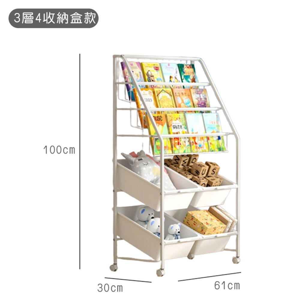 品名:收納書架/落地式書刊展示架-(3層4收納盒款)