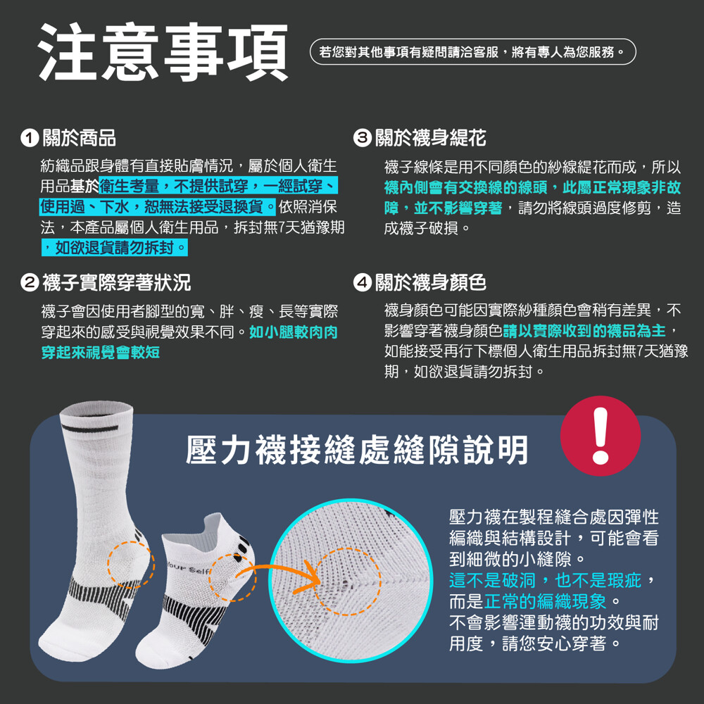 │襪子會因使用者腳型的寬、胖瘦、長等,且拍照模特兒所展示襪子皆為示意圖,實際穿起來的感受與視覺效果不同。