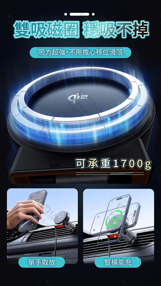 🧲 雙磁環設計,吸力超強 – 可承重 1700g,手機穩固不掉落