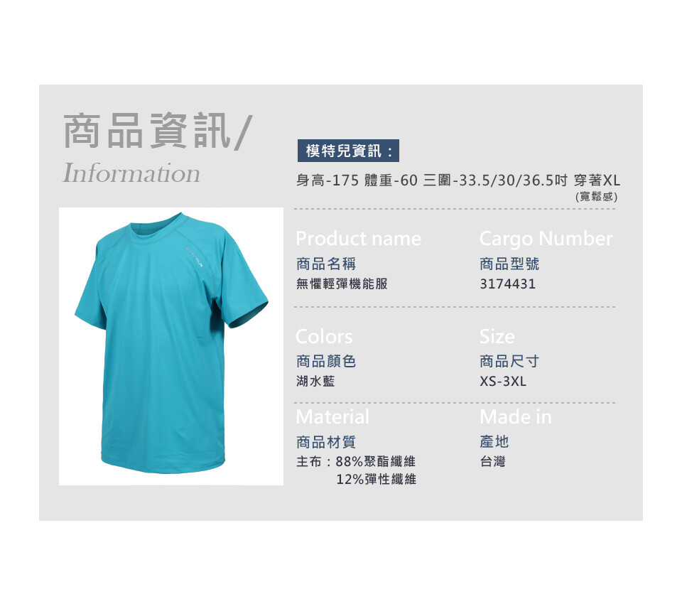 HODARLA 男無懼輕彈短袖T恤-台灣製 親膚 吸濕排汗 機能服 湖水藍