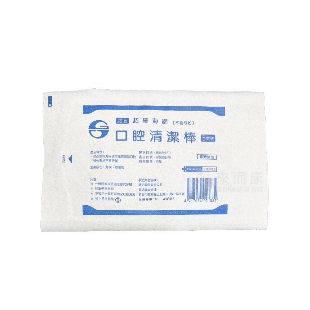 來而康 鈺弘 口腔清潔棒 無粉 5支/包 600包/箱 海綿 潔牙棒 口腔 清潔棒 台灣製造