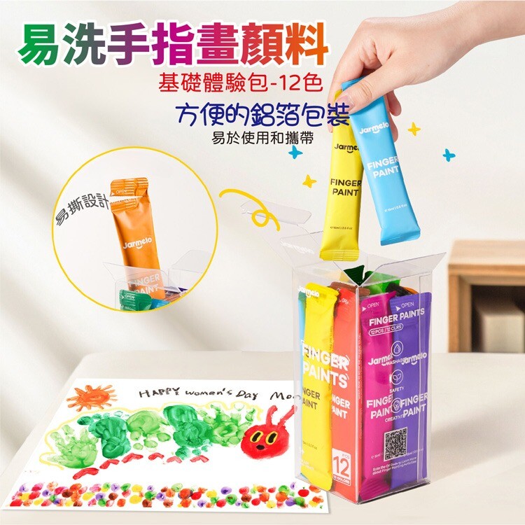 【品名】:易洗手指畫顏料基礎12色體驗包+手指畫啟蒙繪本 創作超值組