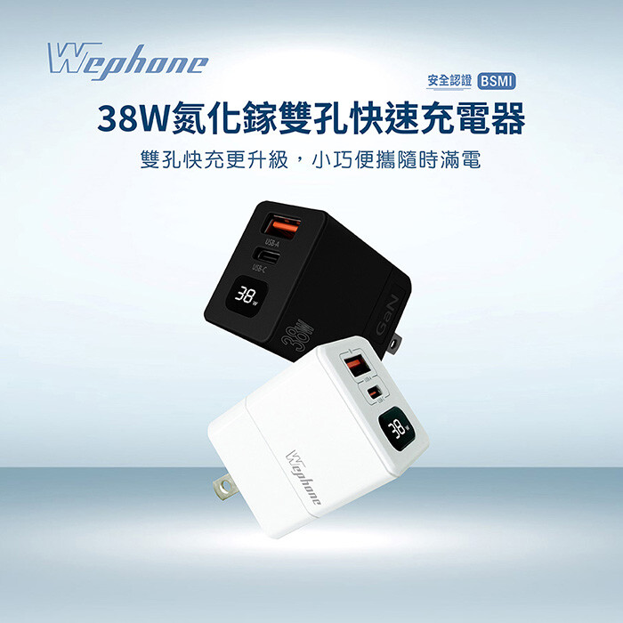 【Wephone】GaN氮化鎵38W 數字顯示雙孔快速充電器(1C1A)