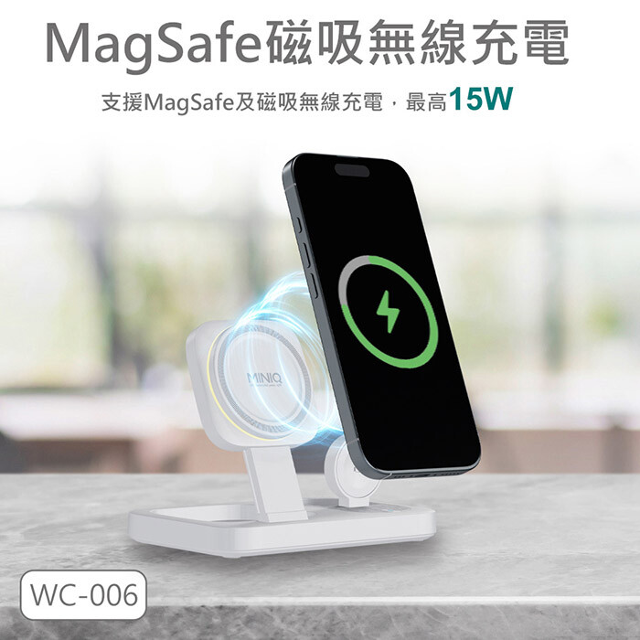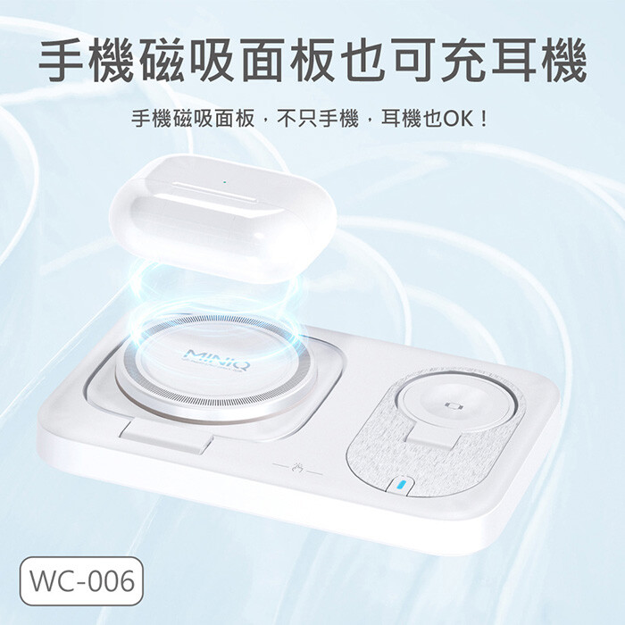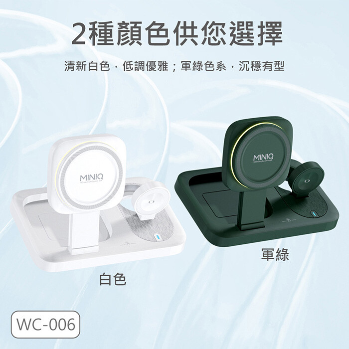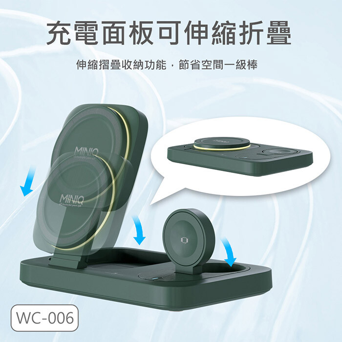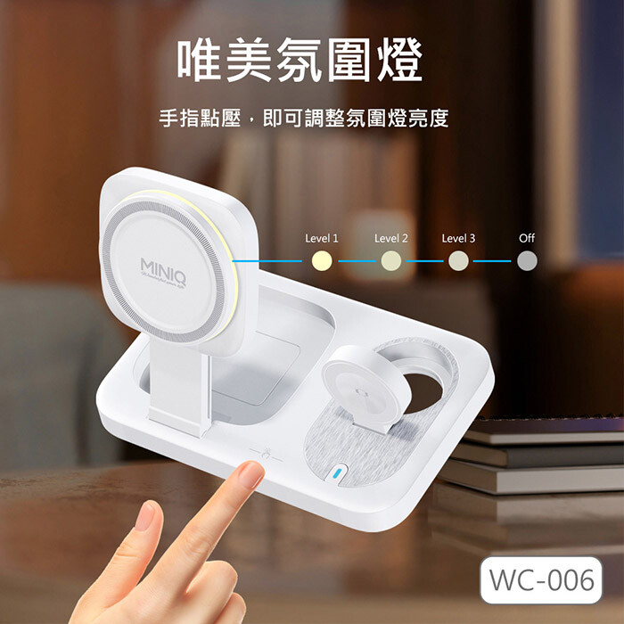 MINIQ 台灣製造3in1 22.5W 折疊式磁吸無線充電器座/氛圍燈(手機/手錶/耳機)
