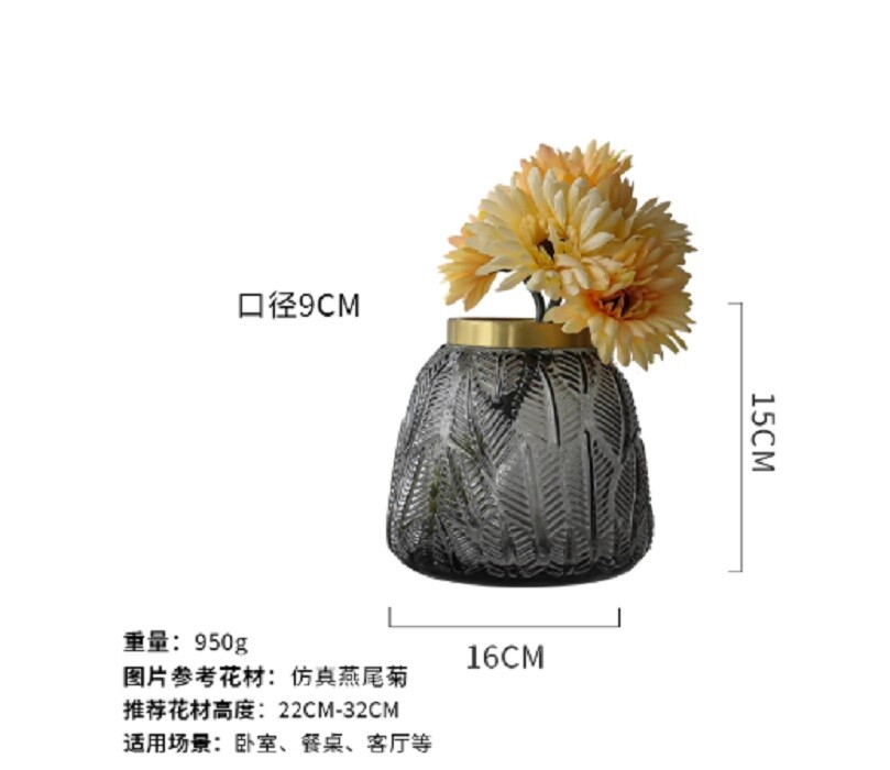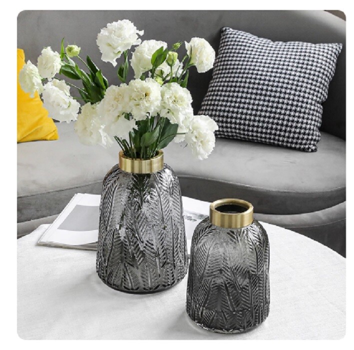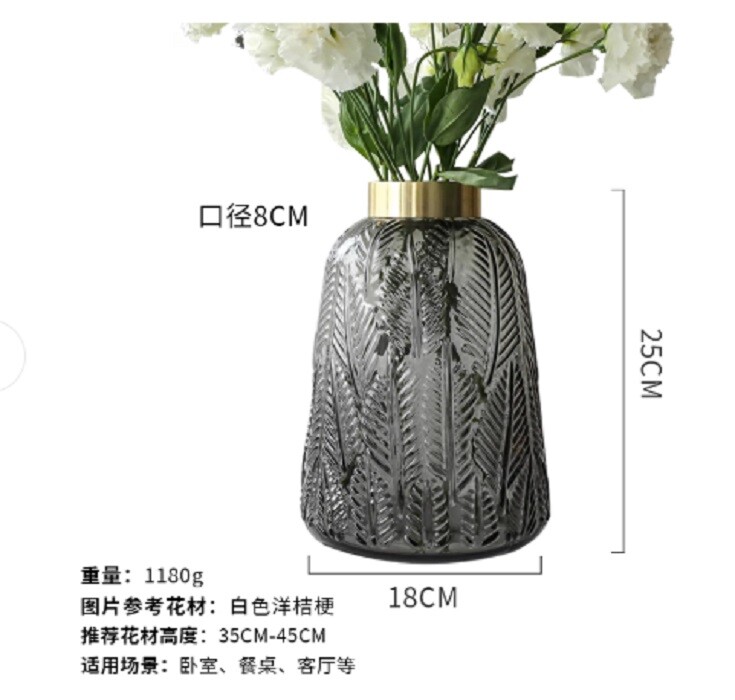 北歐高級樹葉紋花瓶玻璃輕奢網紅美式復古餐桌擺飾客廳插花矮裝飾大瓶+小瓶