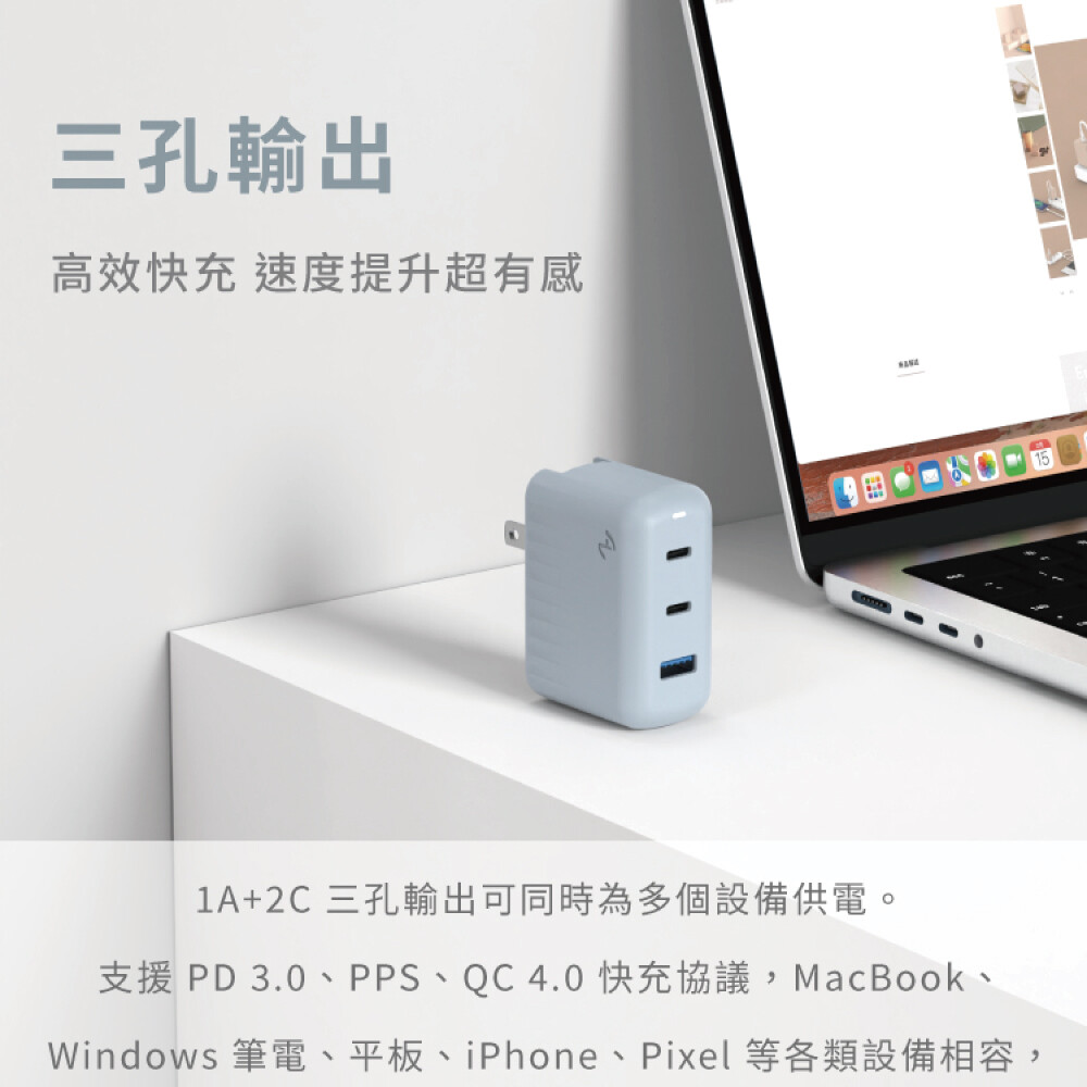 ●GaN氮化鎵黑科技,快充高穩定散熱佳,BSMI認證,5重斷電安全防護!