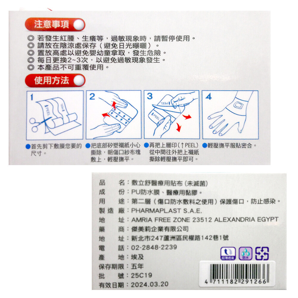 醫療器材許可證所載品名:敷立舒醫療用貼布(未滅菌)