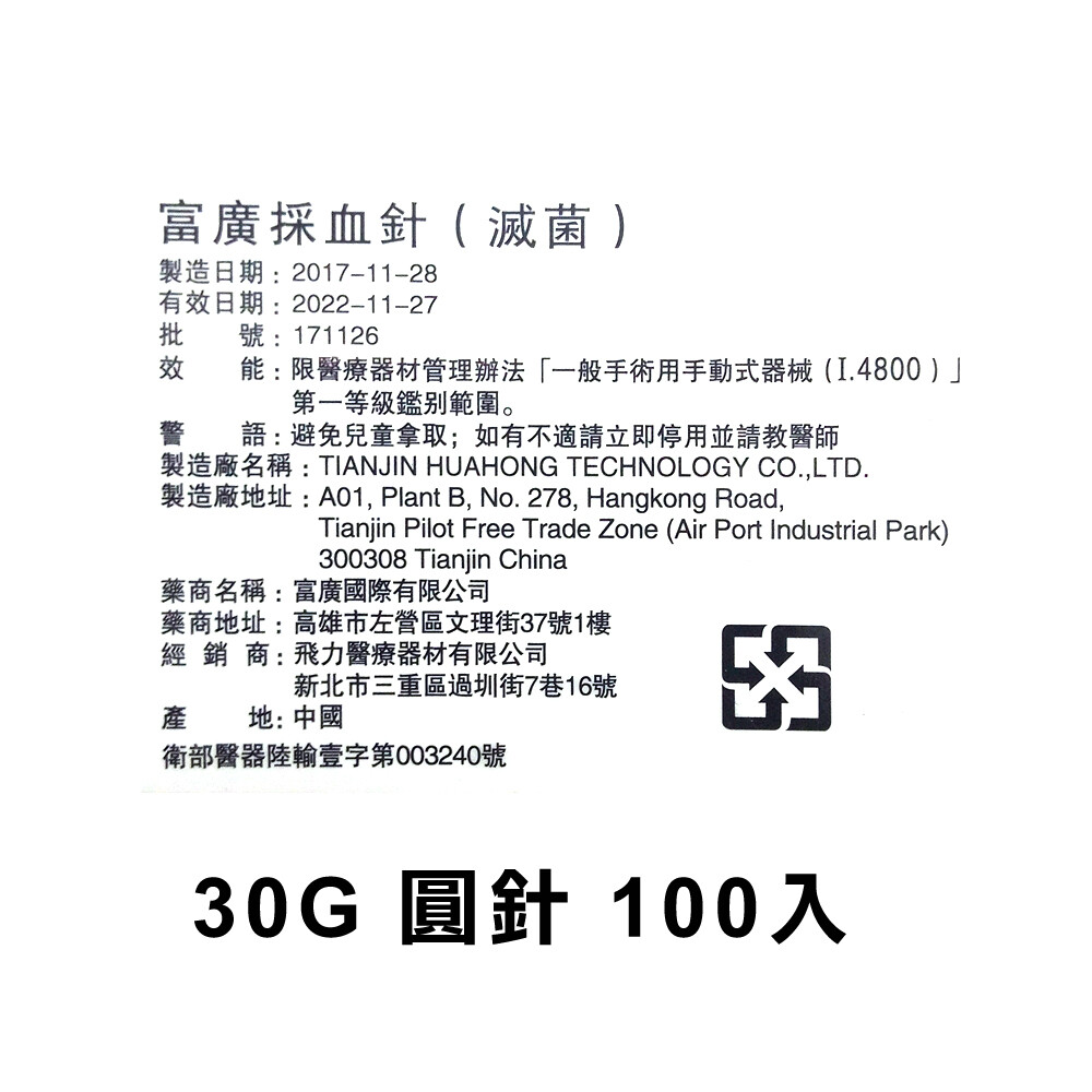 ◆核定品名:"富廣"採血針 (滅菌)