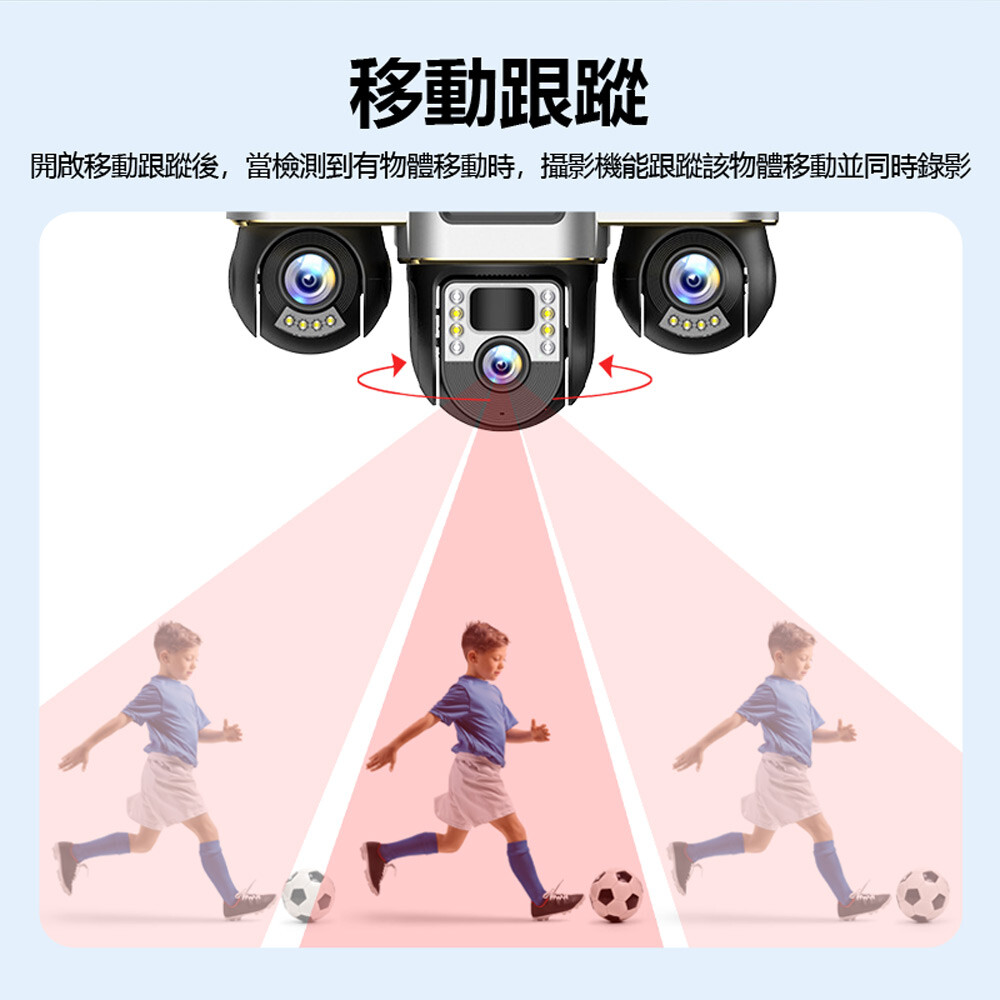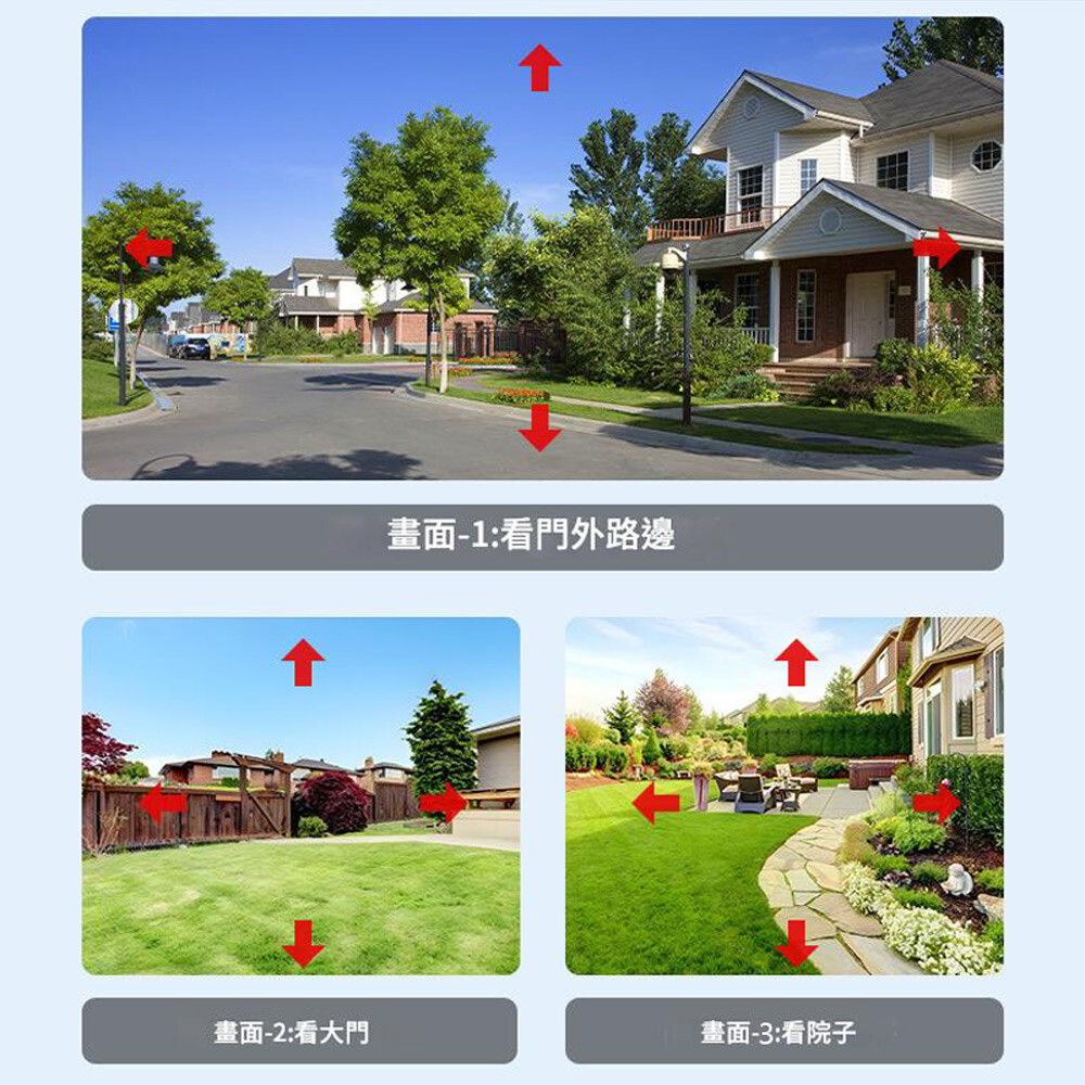 ★ 三旋轉球鏡頭+三畫面監控,360°全景監控