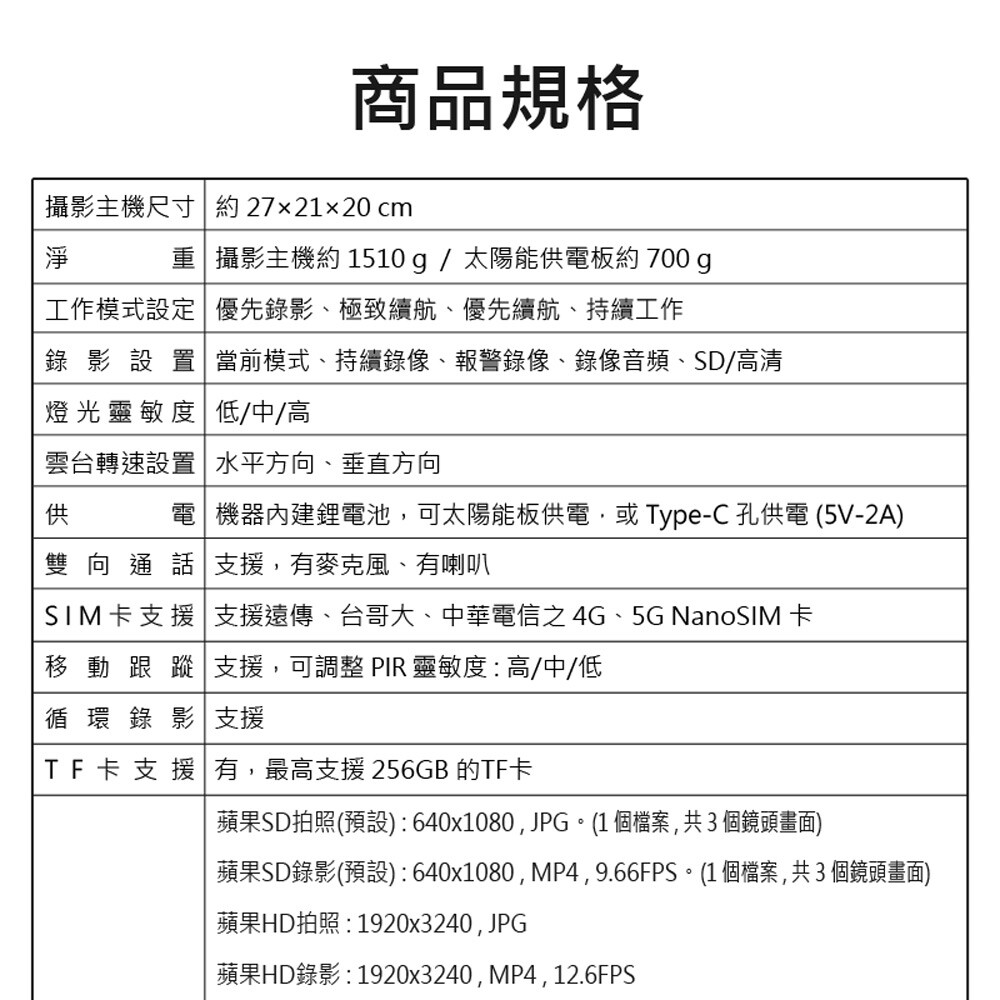 ★ 4G/5G-NanoSIM卡網路連接,手機遠程監控