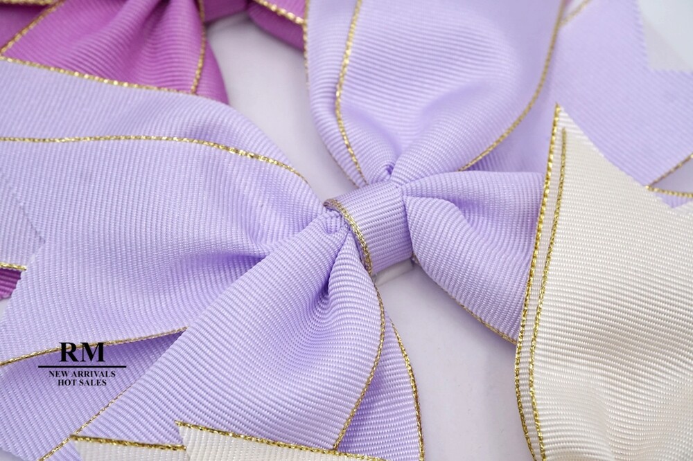 絢紫幻彩蝴蝶結(Violet Gleam Bow)|米色|羅紋|紫色|裝飾|緞帶用途|金邊|織帶