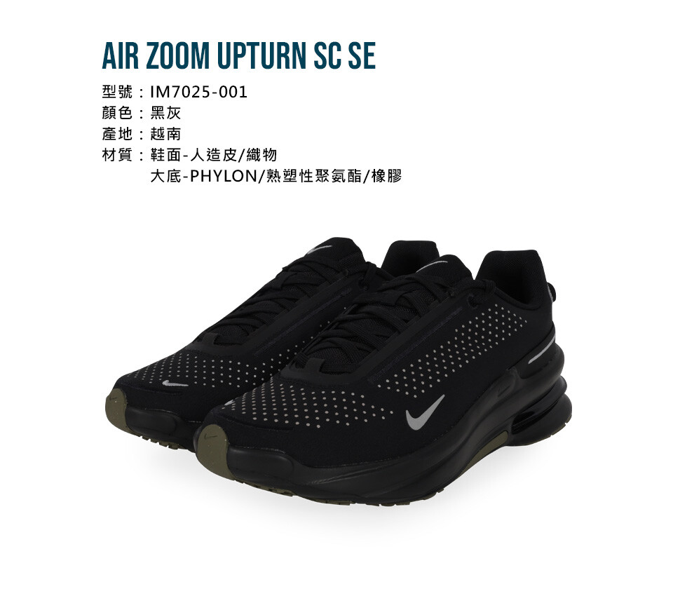 NIKE AIR ZOOM UPTURN SC SE 男氣墊緩震慢跑鞋-路跑 黑灰