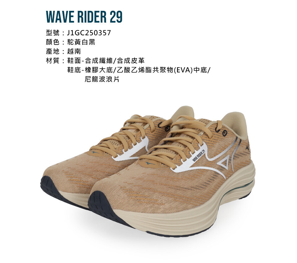 MIZUNO WAVE RIDER 29 男緩震慢跑鞋-運動 美津濃 駝黃白黑