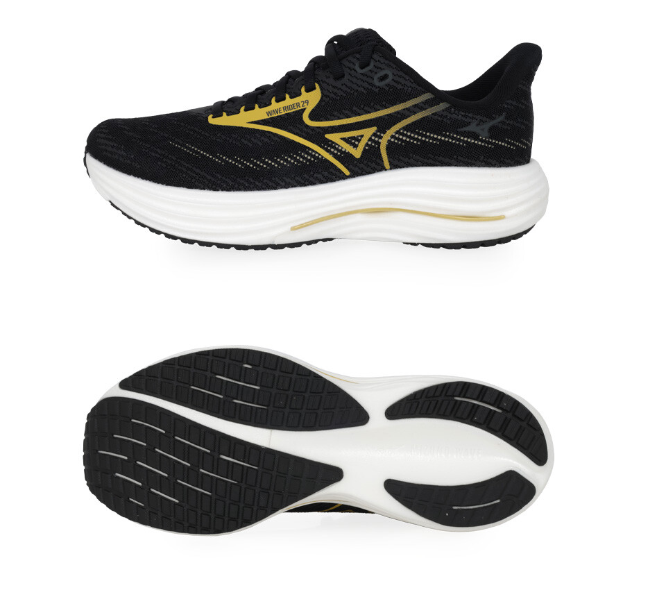 MIZUNO WAVE RIDER 29 男緩震慢跑鞋-運動 美津濃 黑芥末黃
