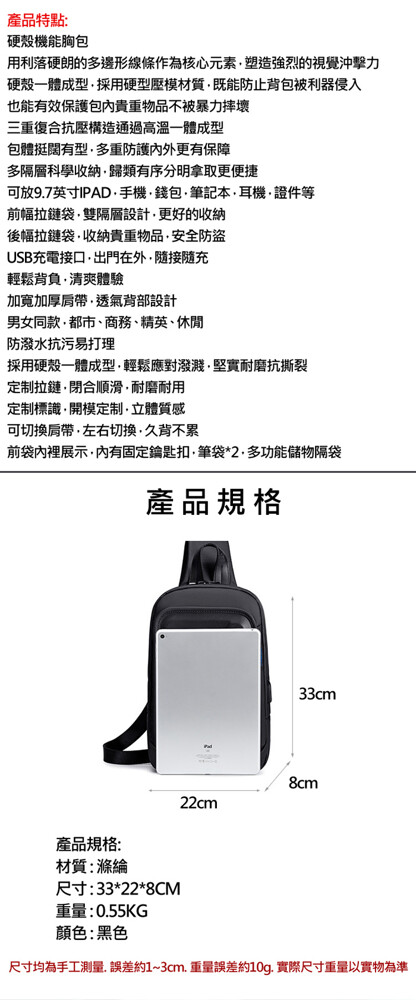 USB充電接口,耳機線外接口,加寬加厚肩帶透氣