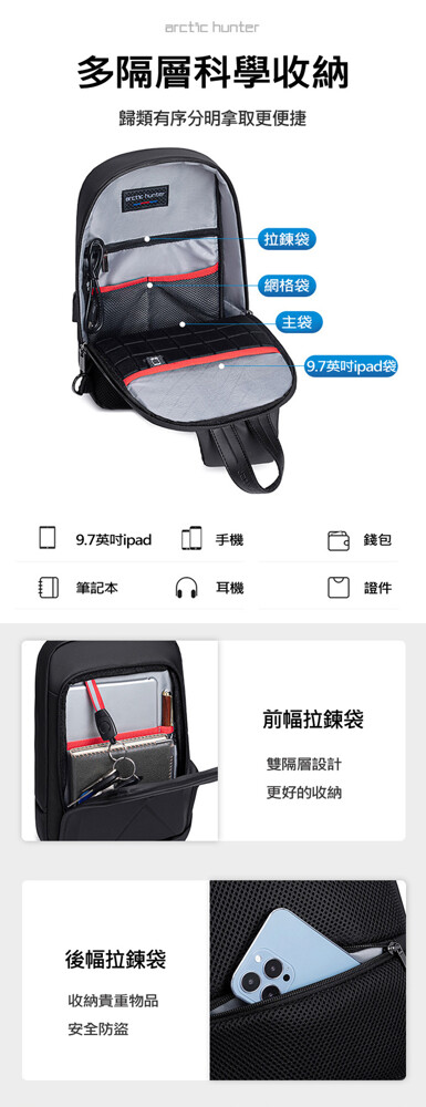 多隔層收納可放9.7英寸IPAD手機錢包耳機證件