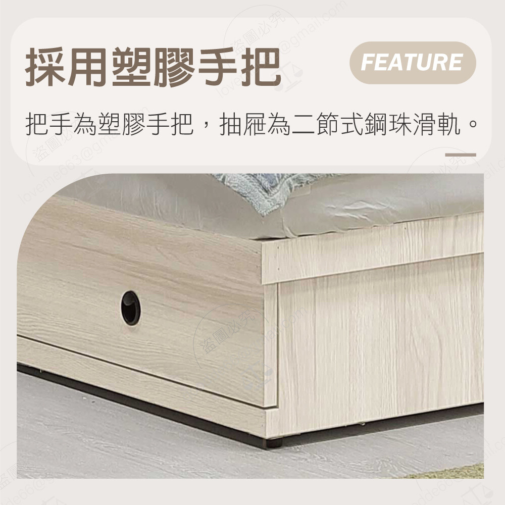 床底抽屜為二節式鋼珠滑軌