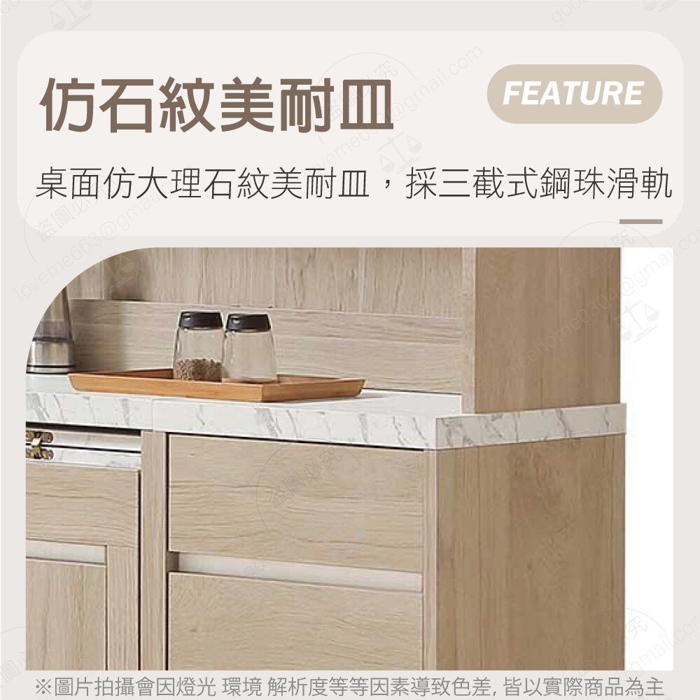 桌面採仿大理石紋美耐皿材質,具高溫耐刮磨