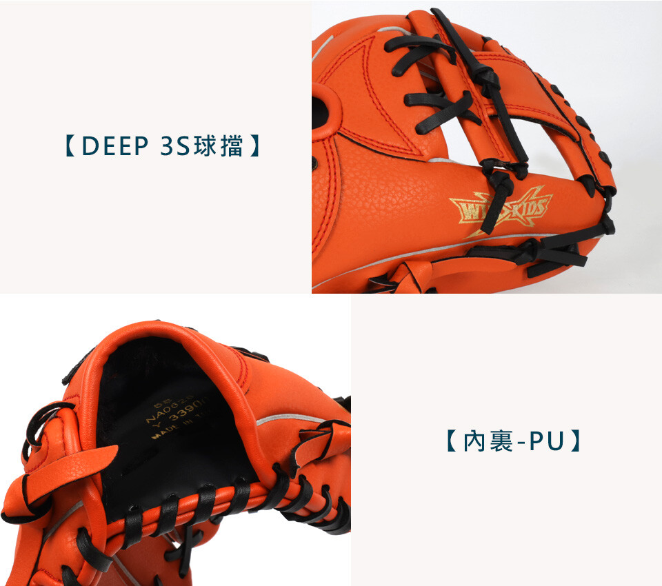 MIZUNO 少年用手套-右投 美津濃 棒壘球 橘金