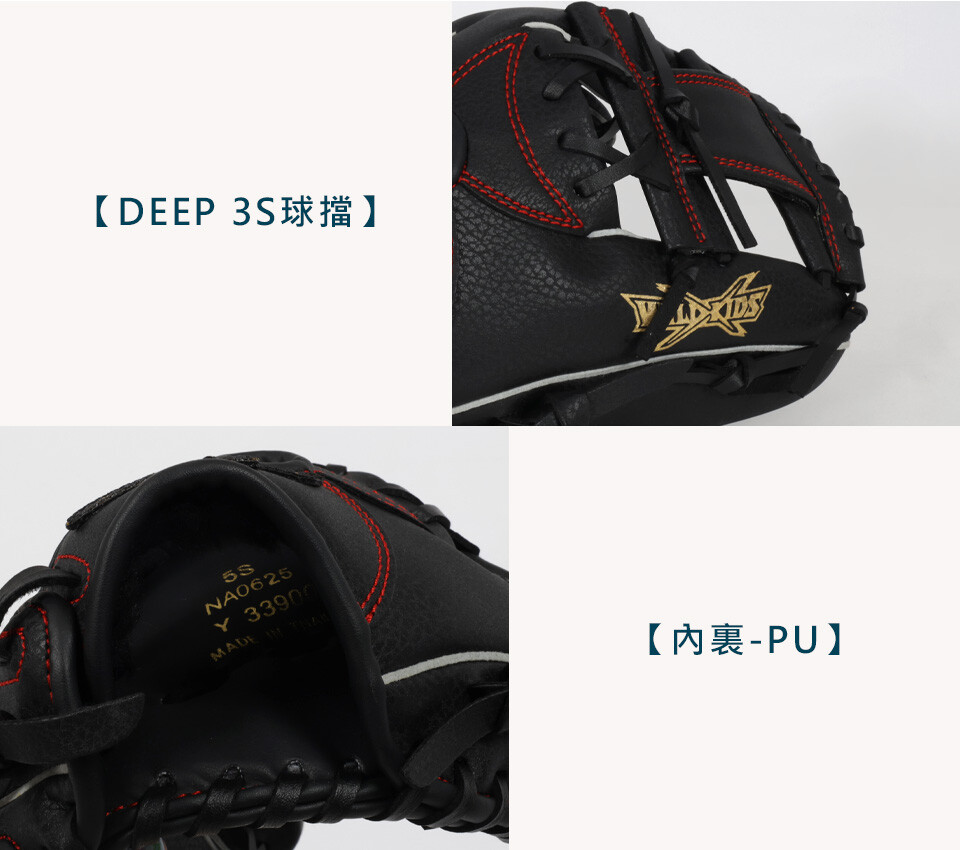 MIZUNO 少年用手套-右投 美津濃 棒壘球 黑紅金