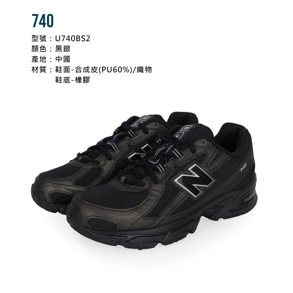 NEWBALANCE 男女復古運動鞋-慢跑 復古 NB 740系列 黑銀