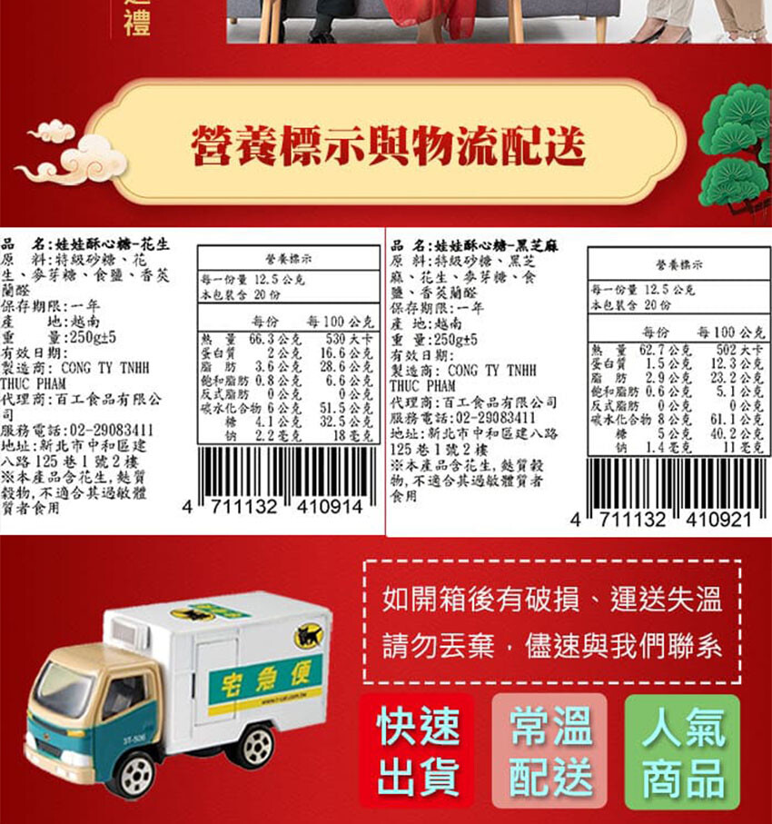 過敏原資訊:本產品含花生、黑芝麻、麩質穀物,不適合其過敏體質食用