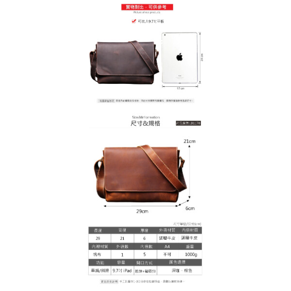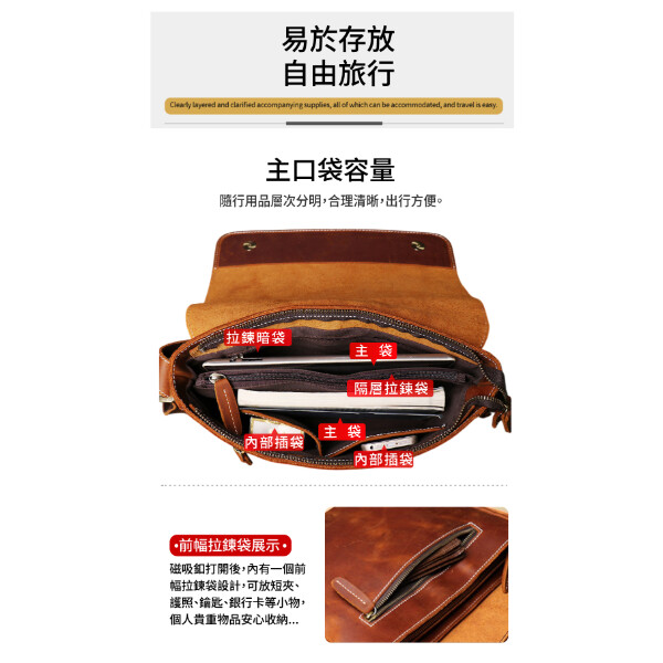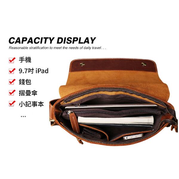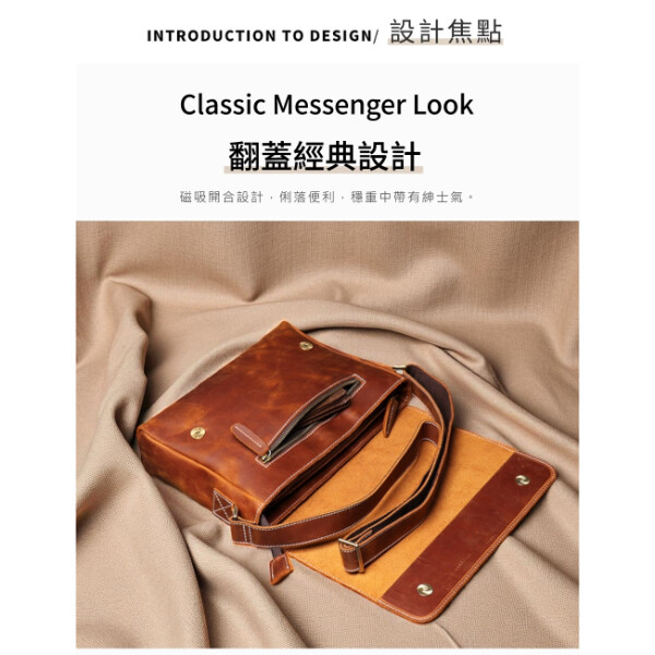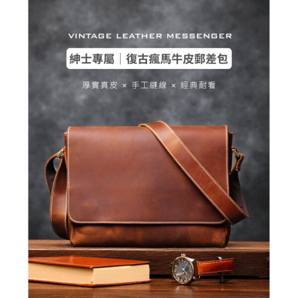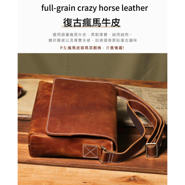 商品名稱:【喜番屋】真皮頭層瘋馬牛皮男士翻蓋肩背包斜背包郵差包男包【LB1178】