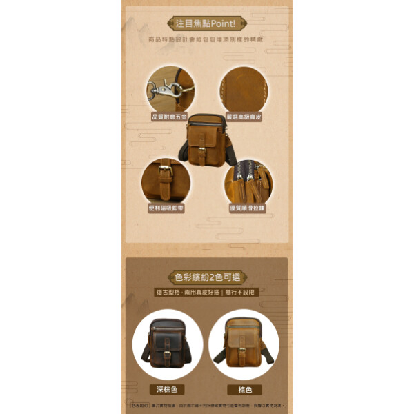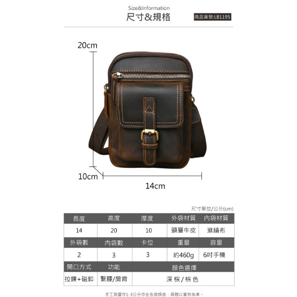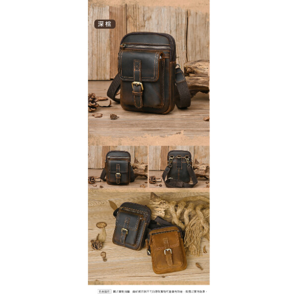 商品名稱 :【喜番屋】真皮頭層瘋馬牛皮2WAY男士腰掛包手機包肩背包腰包男包【LB1195】