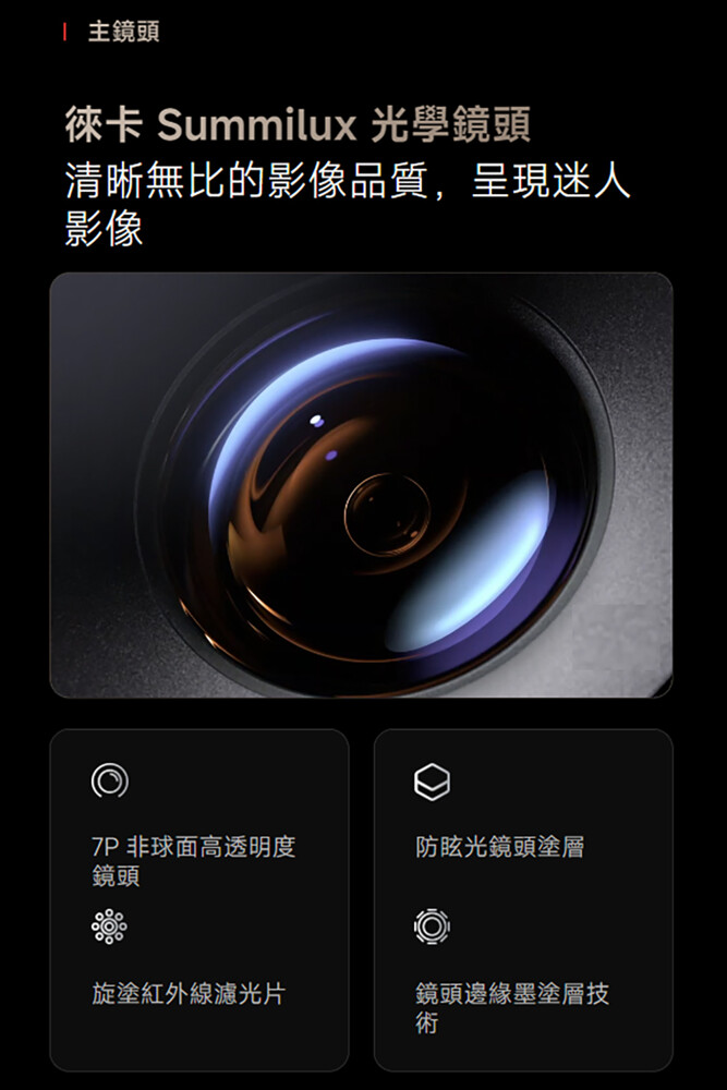 ◎ 後置 5,000 萬畫素徠卡廣角主鏡頭 + 1,200 萬畫素徠卡超廣角鏡頭 + 5,000 萬畫素徠卡長焦鏡頭
