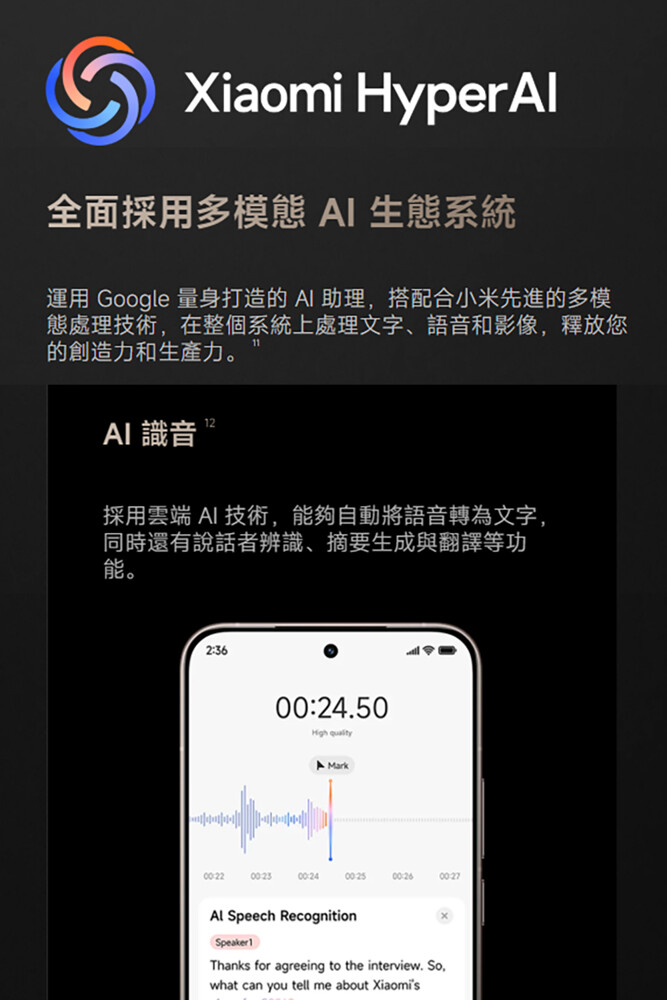 ◎ Android 15 作業系統、Xiaomi HyperOS 2 操作介面