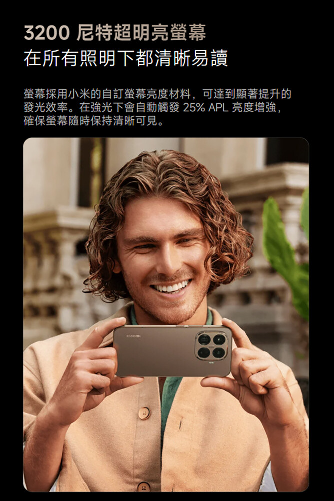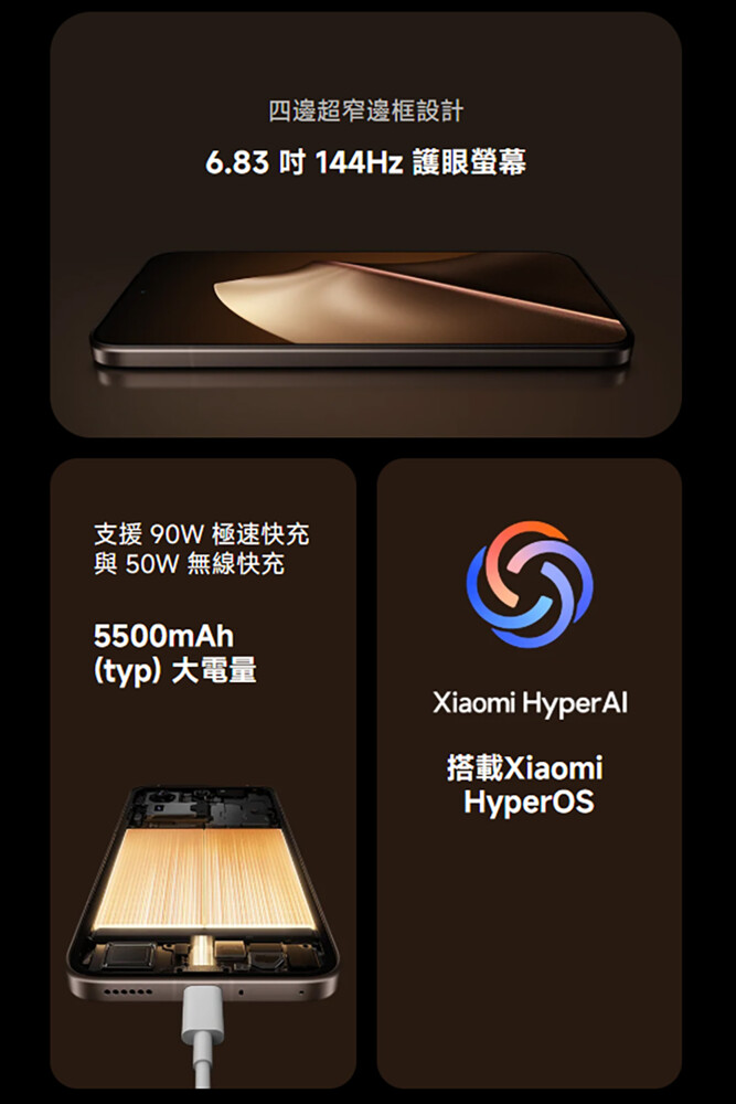 Xiaomi 15T Pro 這次升級搭載 6.83 吋 AMOLED 螢幕,並採用康寧大猩猩 7i 玻璃加強保護,支援 144Hz 螢幕更新率與最高 3,200nits 峰值亮度,即使在戶外強光環境下,也能清晰呈現畫面內容。此外,支援 P3 廣色域、Dolby Vision 與 HDR10+,不僅強化影像的對比度與色彩表現,更能真實還原細節質感。同時也通過德國萊茵 TÜV 三重護眼認證,具備全亮度 DC 調光 與防閃爍技術,有效減輕長時間觀看所帶來的眼睛疲勞。
