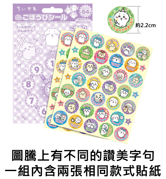 吉伊卡哇 獎勵貼紙 64枚 日本製 貼紙 手帳貼 裝飾貼紙 兒童貼紙 小八 兔兔【163671】