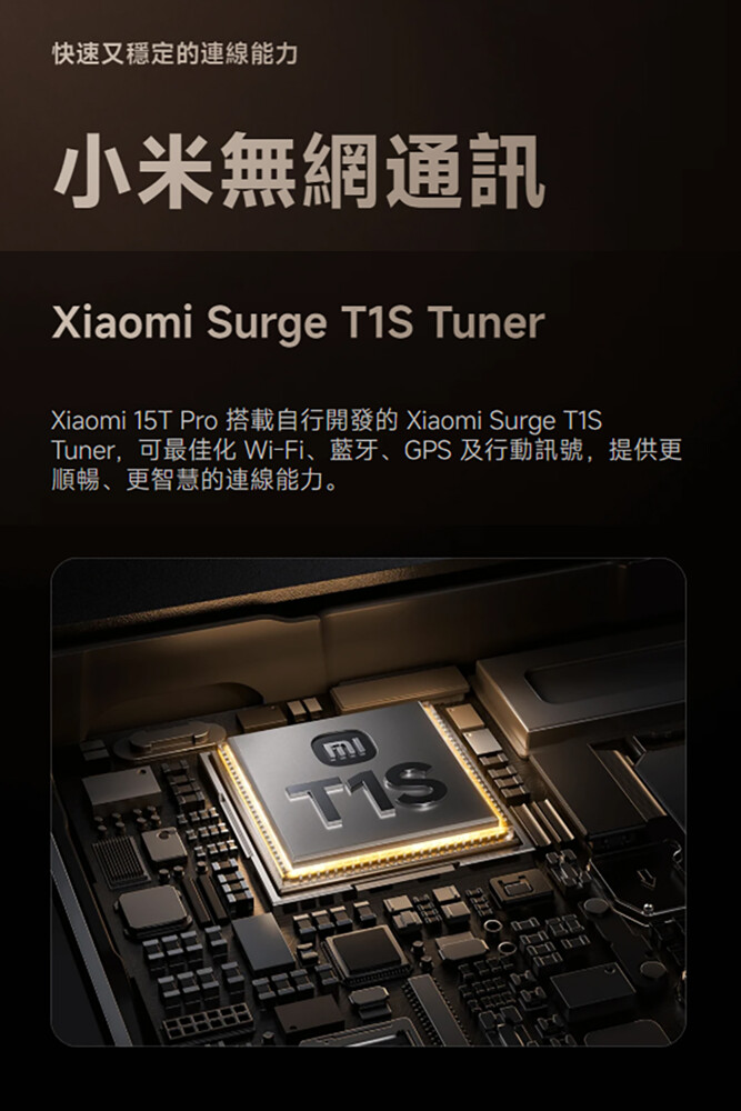 Xiaomi 15T Pro 採用 Android 15 作業系統與 Xiaomi HyperOS 2 操作介面,搭載聯發科天璣 9400+ 八核心處理器,提供 12GB RAM 搭配 512GB 或 1TB ROM,支援 Wi-Fi 7、藍牙 6.0、NFC、iPASS 一卡通服務與紅外線遙控器,並內建 AI 錄音、AI 筆記與 AI 翻譯等應用。續航方面,配備 5,500mAh 電池,支援 90W 超級快充與 50W 無線快充。除此之外,Xiaomi 15T Pro 還搭載全新的小米星辰通訊系統,其中「小米無網通訊」功能能在沒有基地台訊號或 Wi-Fi 的情況下,實現裝置間最遠 1.9 公里範圍內的點對點語音通話。