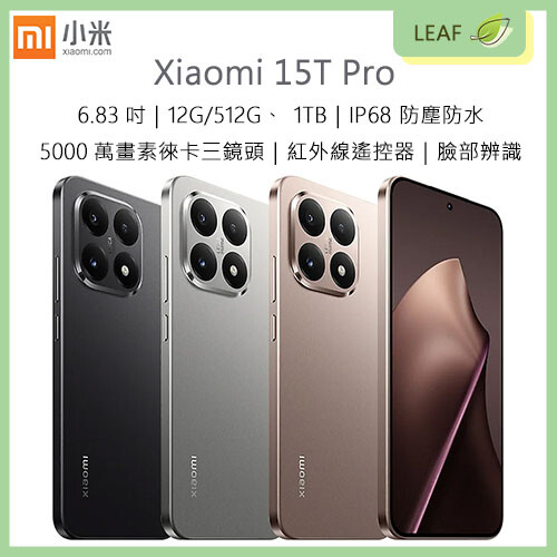 #公司貨 #小米 #Xiaomi #15TPro #6.83吋 #12G/512G #12G/1TB #5G+5G雙卡雙待 #5000萬畫素徠卡三鏡頭 #5500mAh電量 #IP68防塵防水等級 #指紋辨識 #臉部辨識 #智慧型手機