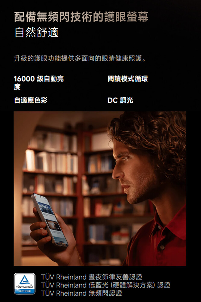 Xiaomi 15T Pro 這次升級搭載 6.83 吋 AMOLED 螢幕,並採用康寧大猩猩 7i 玻璃加強保護,支援 144Hz 螢幕更新率與最高 3,200nits 峰值亮度,即使在戶外強光環境下,也能清晰呈現畫面內容。此外,支援 P3 廣色域、Dolby Vision 與 HDR10+,不僅強化影像的對比度與色彩表現,更能真實還原細節質感。同時也通過德國萊茵 TÜV 三重護眼認證,具備全亮度 DC 調光 與防閃爍技術,有效減輕長時間觀看所帶來的眼睛疲勞。