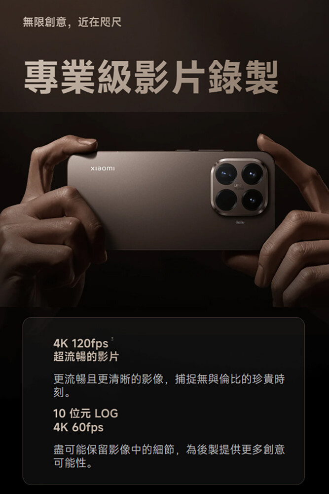 Xiaomi 15T Pro 後置 5,000 萬畫素徠卡廣角主鏡頭 + 1,200 萬畫素徠卡超廣角鏡頭 + 5,000 萬畫素徠卡長焦鏡頭,主鏡頭採用光影獵人 900 感光元件,支援最高 4K 120fps 錄影,並可進行 4K 60fps 10-bit Log 影片錄製,同時支援三麥克風錄製、LUT 色彩描述檔匯入,為專業影像創作提供更大彈性。三鏡頭亦支援全焦段 4K 30fps HDR10+ 錄影,確保每個瞬間都能細膩呈現。搭配內建的 AI 圖片編輯、AI 人像與 AI 剪輯等工具,讓使用者不論是拍攝或後製,都能輕鬆創作高品質影像作品。
