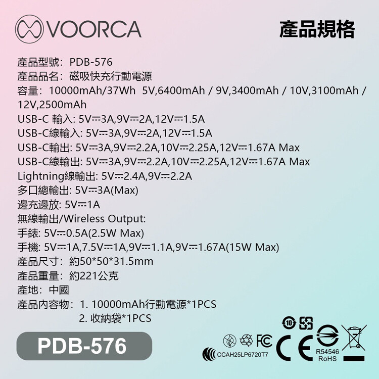 VOORCA PDB576 10000mah自帶雙線+3合1磁吸式無線充(自帶雙線)