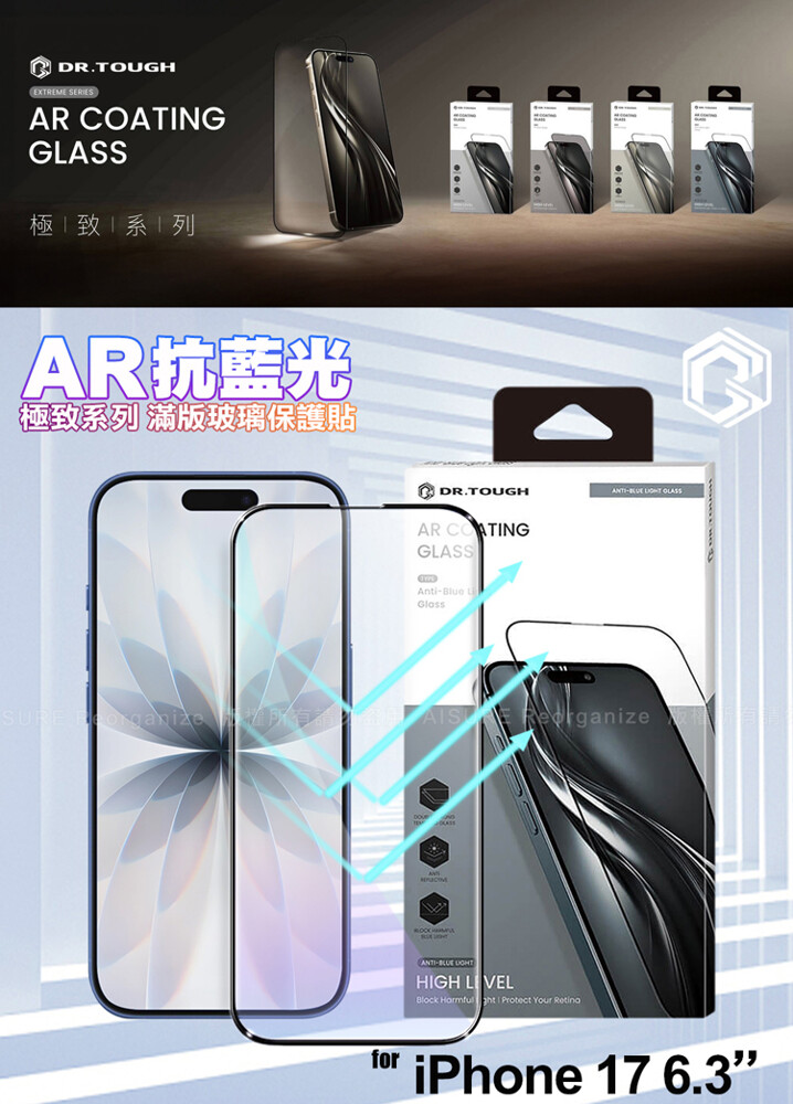 DR.TOUGH硬博士-極致系列 iPhone 17 6.3 滿版玻璃保護貼(AR藍光)