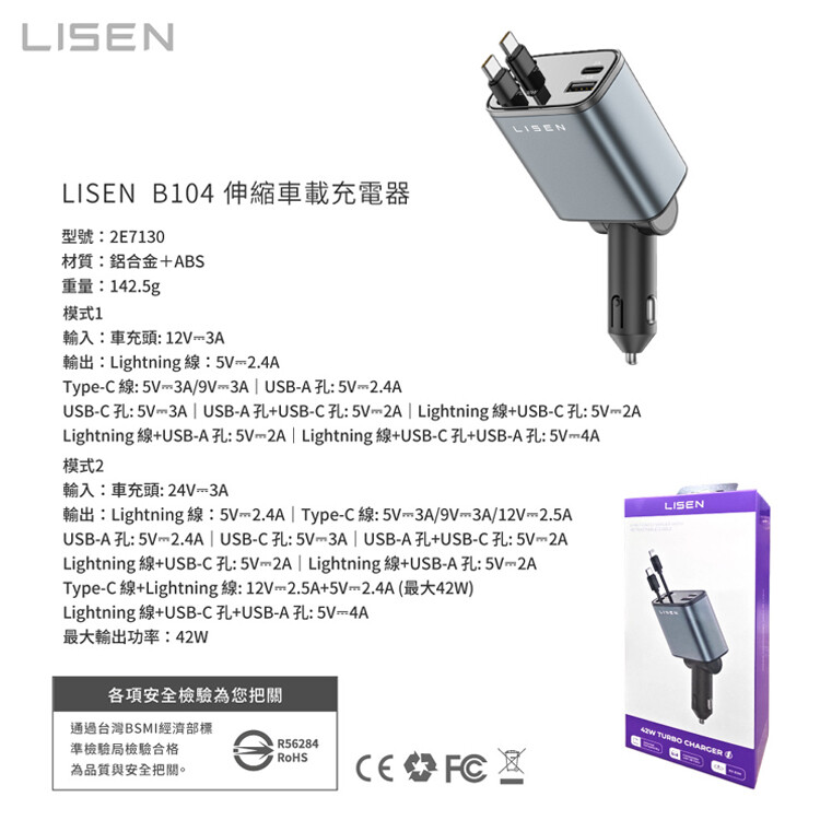 USB-C孔:5V-3A|USB-A孔+USB-C孔:5Vm2A| Lightning線+USB-C孔:5V-2A